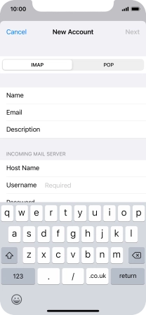 Press Host Name and key in the name of your email provider's incoming server.