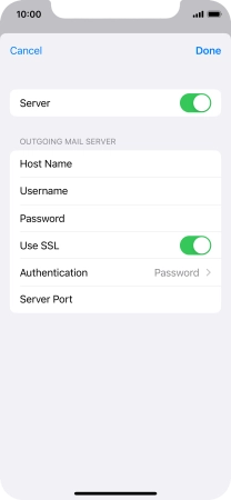 Press Password and key in the password for your email account. Please note that if you're using Vodafone's outgoing server, leave the password field empty.
