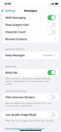 Press the indicator next to "MMS Messaging" to turn on the function.