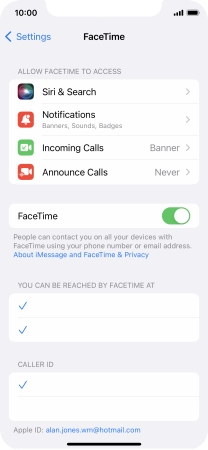Press the required setting below "YOU CAN BE REACHED BY FACETIME AT".