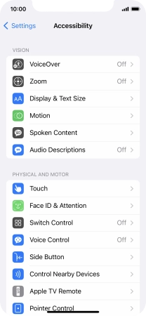 Select accessibility settings on your Apple iPhone X iOS 16.0