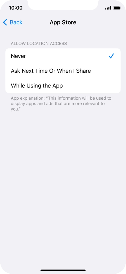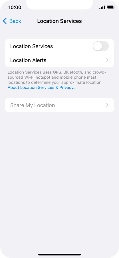 Press the indicator next to "Location Services" to turn the function on or off.