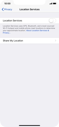 Press the indicator next to "Location Services" to turn the function on or off.