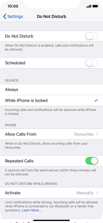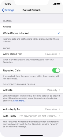 Press the required setting to select which contacts can call you even though Do Not Disturb is turned on.