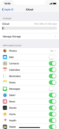 Press the indicator next to the required data type to turn synchronisation on or off.