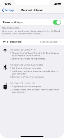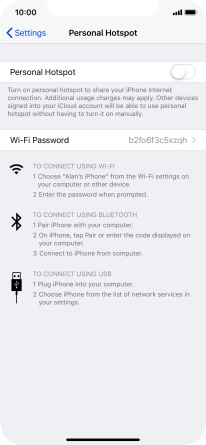 Press the indicator next to "Personal Hotspot" to turn on the function.