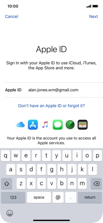 If you don t have an Apple ID, press Don't have an Apple ID or forgot it? and follow the instructions on the screen to create an Apple ID.