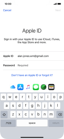 If you don t have an Apple ID, press Don't have an Apple ID or forgot it? and follow the instructions on the screen to create an Apple ID.