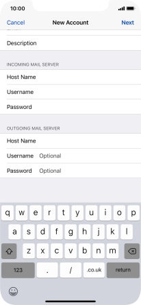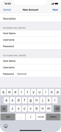Press Host Name and key in the name of your email provider's incoming server.