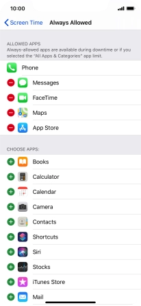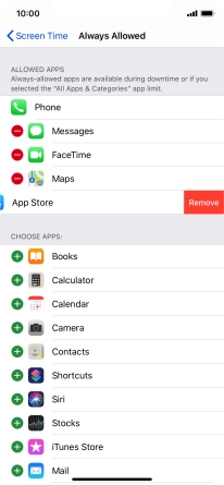 Press the remove icon next to the required app to remove it from the list of allowed apps during Downtime.
