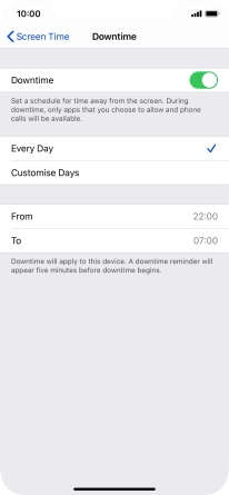 Press the indicator next to "Downtime" and follow the instructions on the screen to select Downtime period.