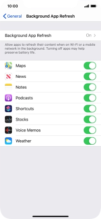 Select settings for background refresh of apps on your Apple iPhone XR iOS 13.0
