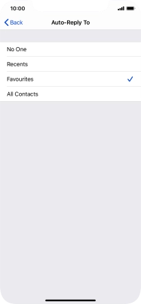 Press the required setting to select which contacts should automatically be notified that Do Not Disturb While Driving is turned on.