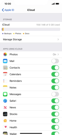 Press the indicator next to "iCloud Drive" to turn file synchronisation on or off.