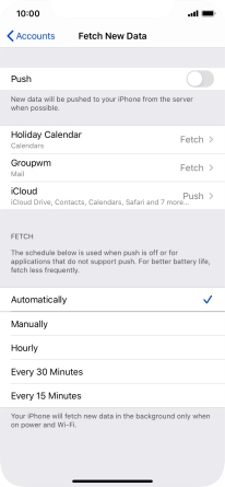 Press the required email account and follow the instructions on the screen to select settings for the specific account.