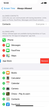Press the remove icon next to the required app to remove it from the list of allowed apps during Downtime.