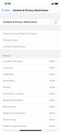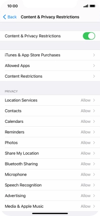 Press the indicator next to "Content & Privacy Restrictions" and follow the instructions on the screen to select settings for content and privacy restrictions.