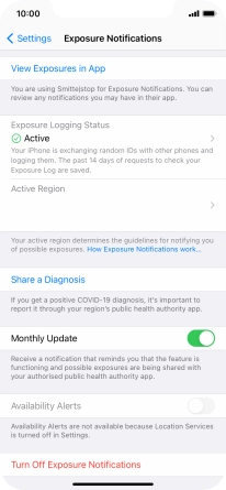 To turn on Exposure Notifications again, open the exposure app and follow the instructions on the screen to turn on the function.