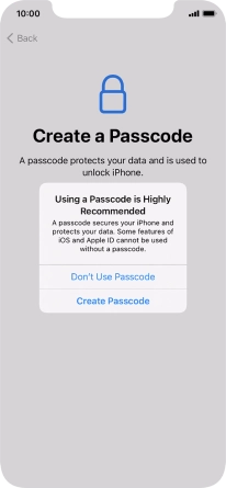 Follow the instructions on the screen to turn on use of phone lock code or press Don't Use Passcode.