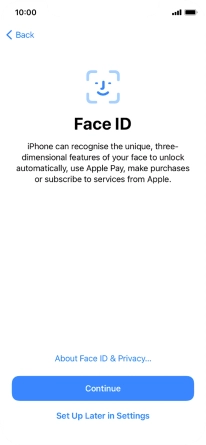 Follow the instructions on the screen to turn on use of Face ID or press Set Up Later in Settings.
