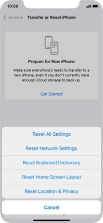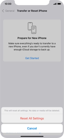 Press Reset All Settings. Wait a moment while the factory default settings are restored. Follow the instructions on the screen to set up your phone and prepare it for use.