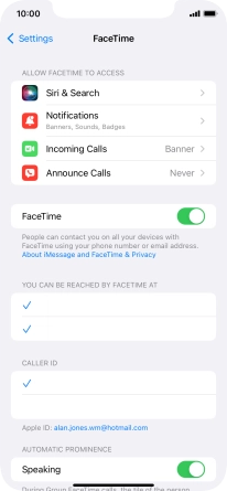 Press the required setting below "YOU CAN BE REACHED BY FACETIME AT".