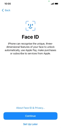 Follow the instructions on the screen to turn on use of Face ID or press Set Up Later.