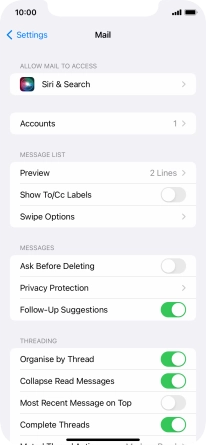Press the required email account and follow the instructions on the screen to select settings for the specific account.