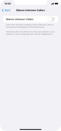 Press the indicator next to "Silence Unknown Callers" to turn the function on or off.