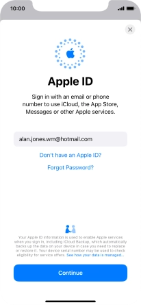 If you don t have an Apple ID, press Don't have an Apple ID? and follow the instructions on the screen to create an Apple ID.