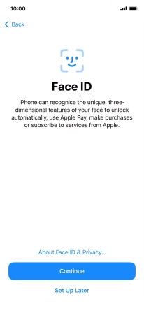 Follow the instructions on the screen to turn on use of Face ID or press Set Up Later.