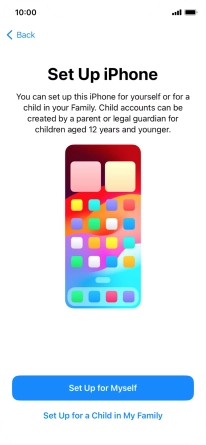 If your phone will be used by a child below the age of 13, follow the instructions on the screen to set up an Apple ID for the child.