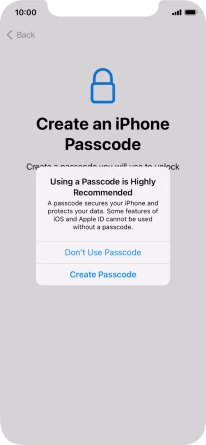 Follow the instructions on the screen to turn on use of phone lock code or press Don't Use Passcode.