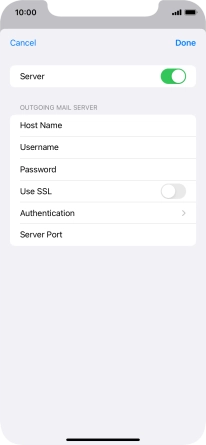 Press Password and key in the password for your email account. Please note that if you're using Vodafone's outgoing server, leave the password field empty.
