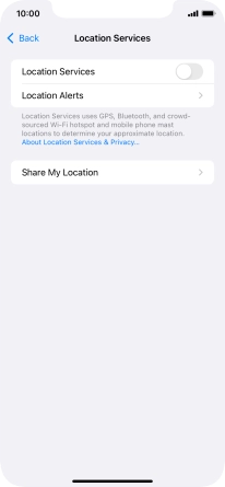Press the indicator next to "Location Services" to turn the function on or off.