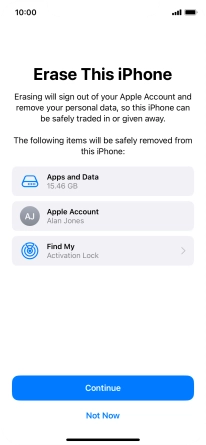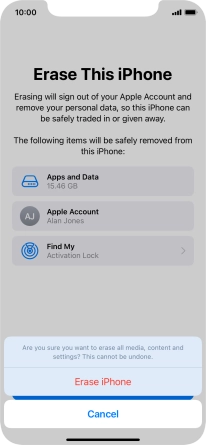 Key in the password for your Apple ID and press Turn Off. Wait a moment while the factory default settings are restored. Follow the instructions on the screen to set up your phone and prepare it for use.