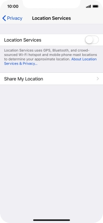 Press the indicator next to "Location Services" to turn the function on or off.