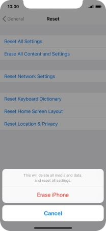 Press Erase iPhone. Wait a moment while the factory default settings are restored. Follow the instructions on the screen to set up your phone and prepare it for use.