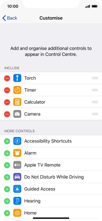 Press the add icon next to the required function to add it to Control Centre.
