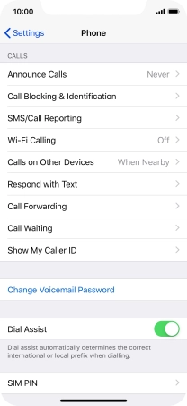 Press the indicator next to "SIM PIN" to turn the function on or off.