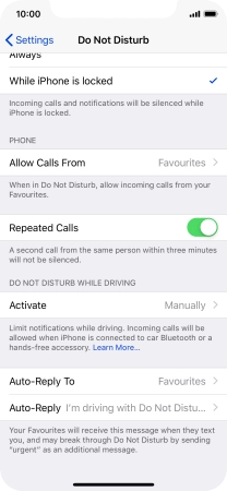 Press Auto-Reply and follow the instructions on the screen to edit the automatic message that Do Not Disturb While Driving is turned on.