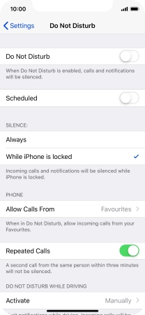 Press the required setting to select which contacts can call you even though Do Not Disturb is turned on.