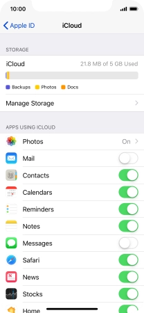 Press the indicator next to "iCloud Drive" to turn file synchronisation on or off.