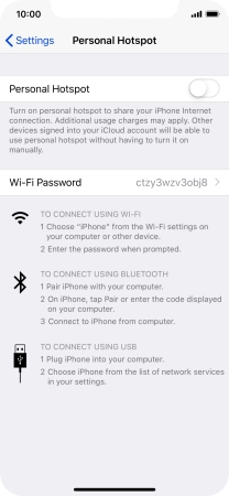 Press the indicator next to "Personal Hotspot" to turn on the function.