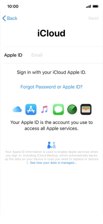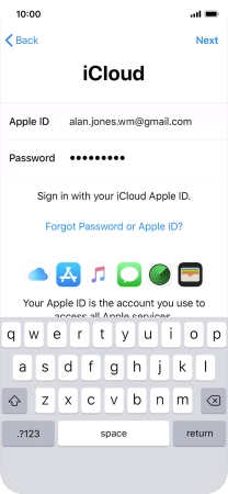 Press the field next to "Apple ID" and key in the username for your Apple ID.
