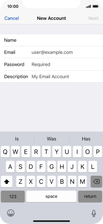 Press Password and key in the password for your email account.