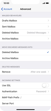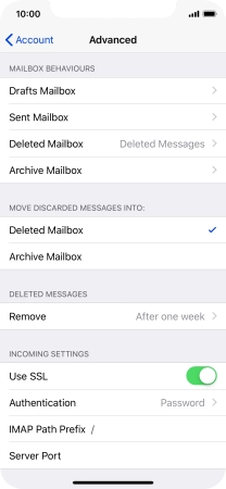 Press the required email account and follow the instructions on the screen to select settings for the specific account.