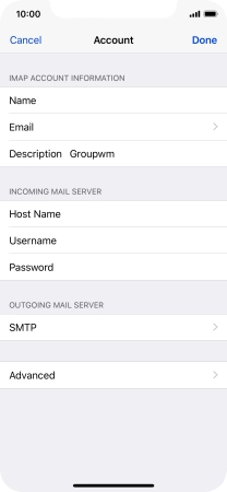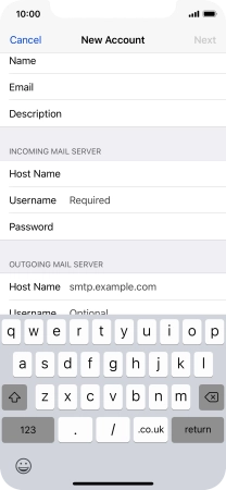 Press Host Name and key in the name or IP address of your email provider's outgoing server. Please note that if you can't send email messages when using your email provider's outgoing server, key in smtp.vodafone.net.au (Vodafone's outgoing server).