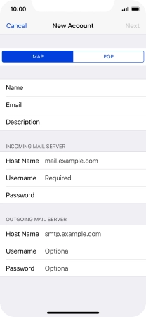 Press Host Name and key in the name of your email provider's incoming server.