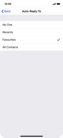 Press the required setting to select which contacts should automatically be notified that Do Not Disturb While Driving is turned on.